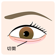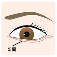 下まぶたをめくり、ラインのように切開します。