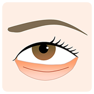 最も一般的なクマで、原因によって治療法が異なりますが、一般的には「目袋」と呼ばれる下まぶたの脂肪(眼窩脂肪)が加齢と共に飛び出てくることが原因となります。
