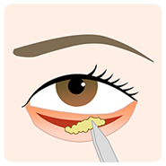 下まぶたの裏側の結膜を1cm程切開し、クマの原因となっている眼窩脂肪を切除します。