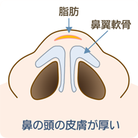 鼻尖形成の手術は皮膚を薄くすることは難しいため、鼻の頭の皮膚が厚い方にはほとんど効果がありません。